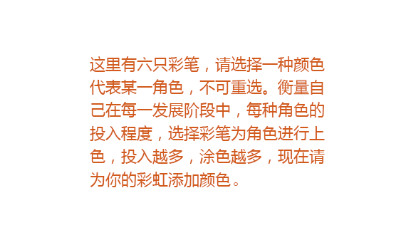 绘制方法:选择不同的颜色代表不同角色在每一个阶段的发展,涂抹颜色面积越多说明在这一阶段投入该角色越多。